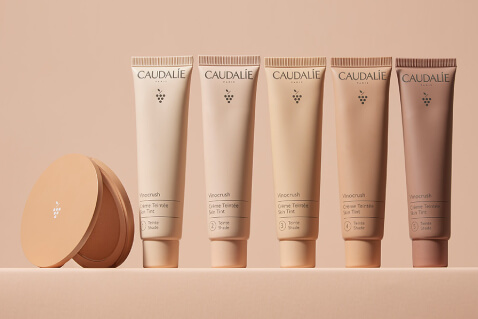 Vinocrush de Caudalie es una crema con color tipo CC Cream que combina tratamiento facial con maquillaje.